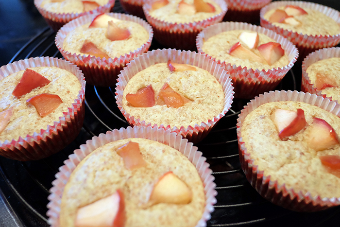 午後、マフィンを焼きました。2、3日に一度はマフィンやケーキを焼いています。小麦粉や砂糖を使わないもので、健康を意識したものになっています。全てを自分たちで食べるのではなく、撮影時の休憩や仕事場への差し入れになっています。