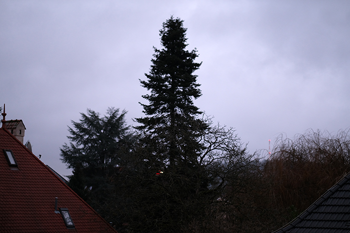 初日の出を撮るために今年も準備をしました。昨年は曇り空でしたが、日の出の時間だけ雲の合間から光が差し込んできました。今年も天気予報では曇り。昨年のこともあるので出かける準備をしていましたが、外を見れば厚い雲が空を覆っています。2019年最初の一枚です。絞り開放で太陽が出ているだろう方向、中央より右奥の木にピントを合わせています。